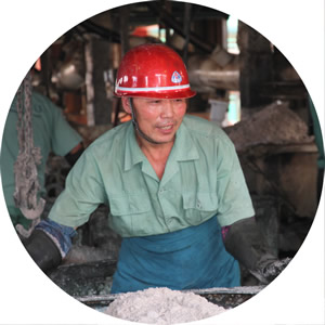 見到李振強時,他正在磺酸車間離心崗位緊張地勞作著,放料、裝車、吊運......忙得不亦樂乎。
